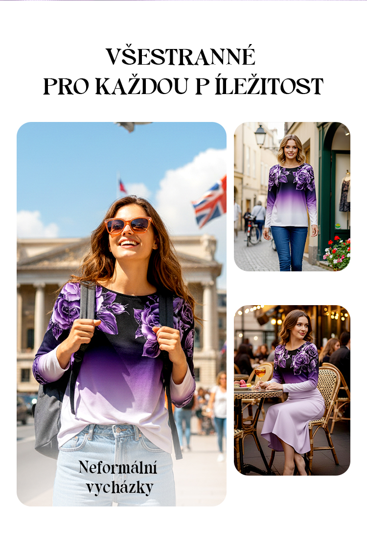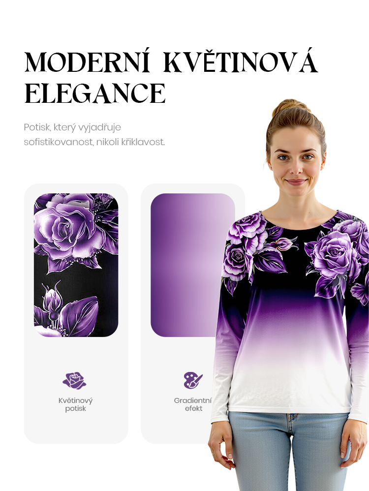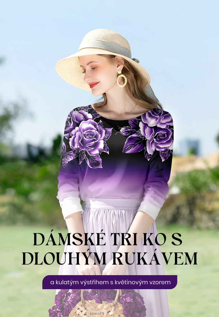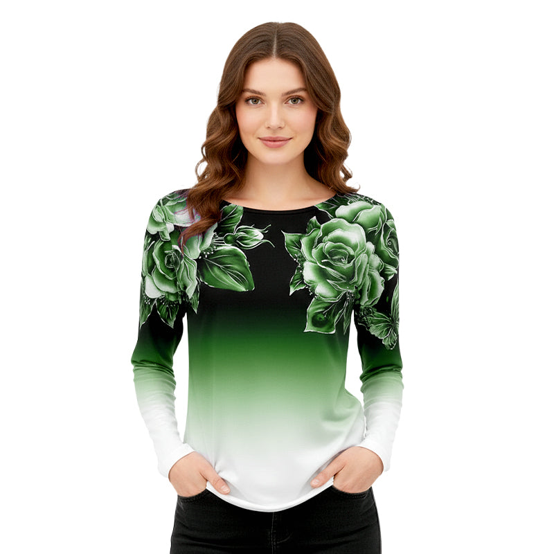 🌺Květinový top s dlouhým rukávem a kulatým výstřihem