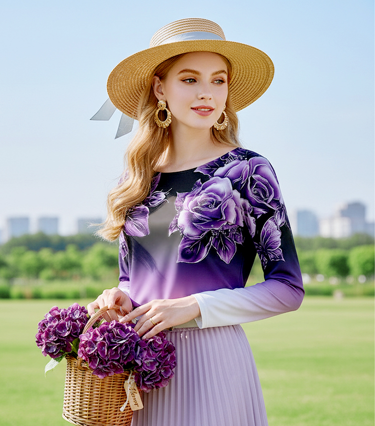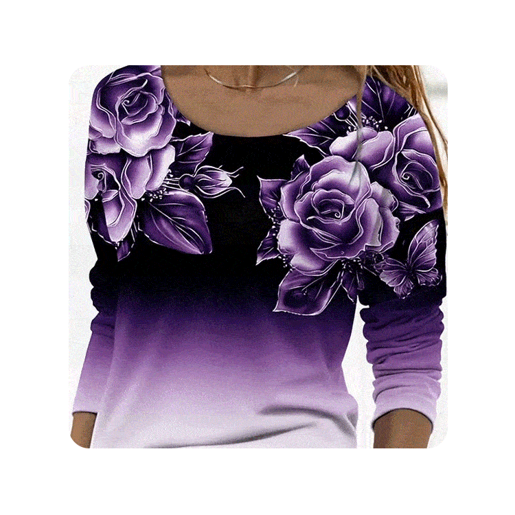 Snížit množství produktu 🌺Květinový top s dlouhým rukávem a kulatým výstřihem