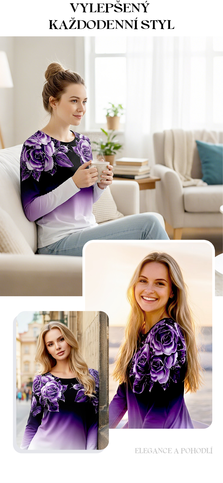 Zvýšit množství produktu 🌺Květinový top s dlouhým rukávem a kulatým výstřihem