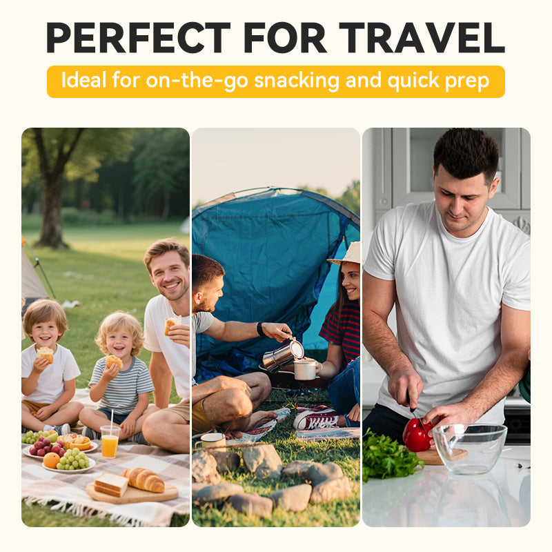 3 V 1 MULTI-NÁSTROJ: Kombinuje škrabku na ovoce, mini nůž a nůž na krabice v jednom kompaktním nástroji – ideální pro každodenní kuchyňské práce, cestování a rozbalování krabic.