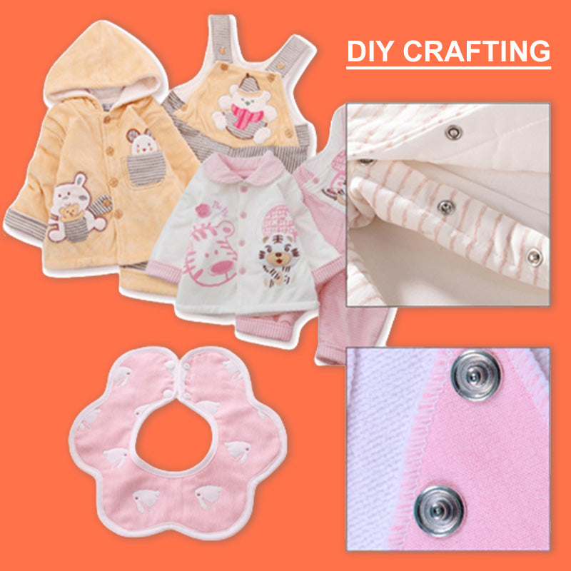 Tato sada nástrojů pro zapínání na patentky je dostatečná pro různé potřeby při ručních pracích nebo výrobě tenkého oblečení. Lze ji použít na dětské bryndáky, oblečení pro lezoucí děti, čepice, košile, dětské kombinézy, slintací ručníky, oblečení pro panenky Barbie/loutky, oblečení pro domácí mazlíčky nebo na další místa, kde ji potřebujete.